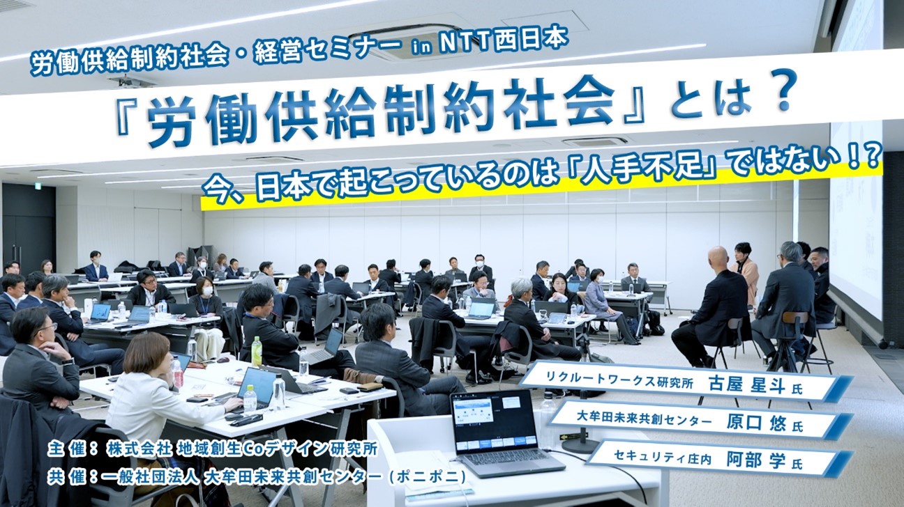 地域創生Coデザイン研究所(NTT西日本グループの地域創生コンサルティング会社)は、2025年3月上旬、NTT西日本の30府県域で各地域に向き合う支店長ら経営幹部を対象に「労働供給制約社会」をテーマとしたセミナーを開催しました。