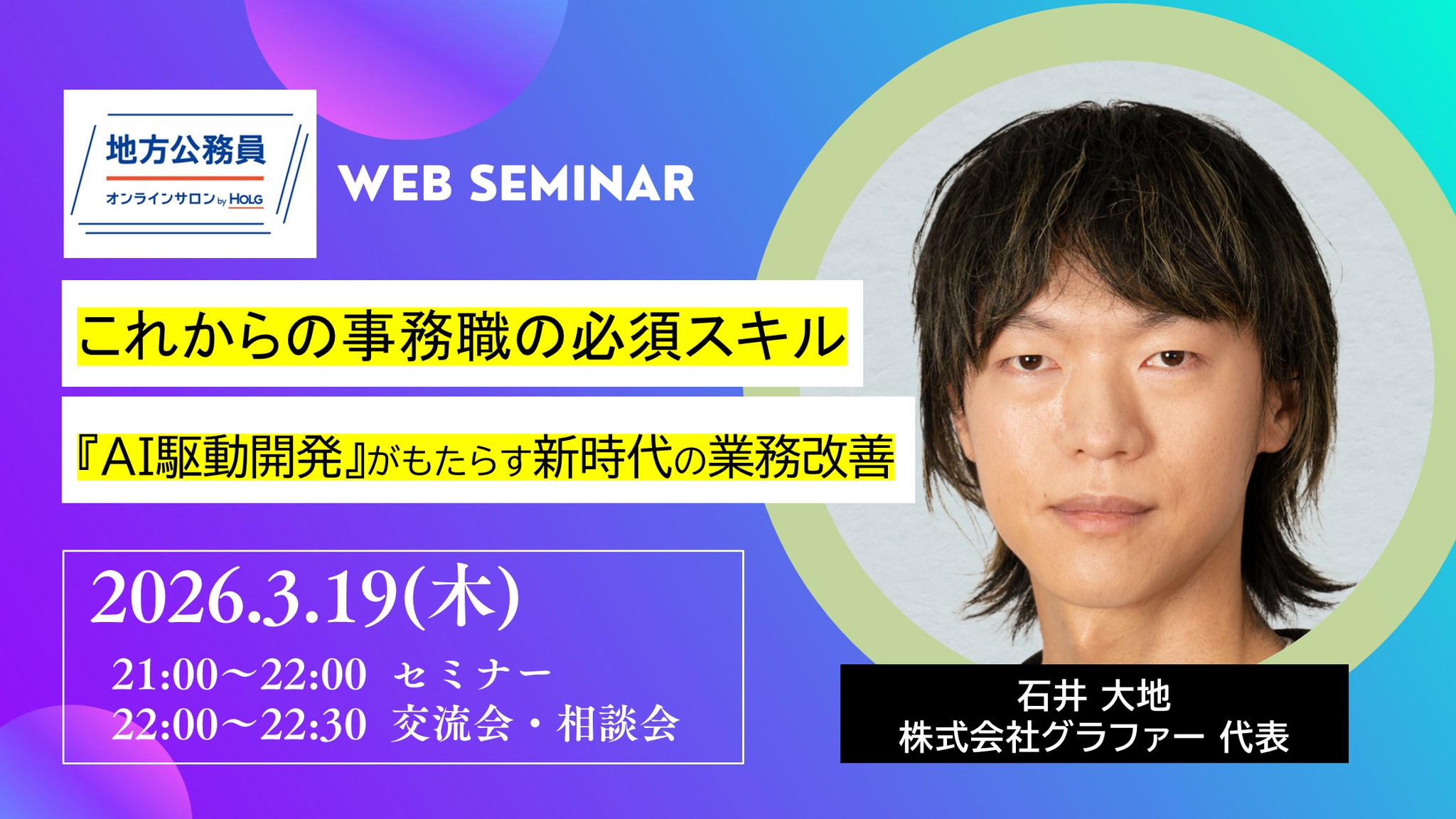 事務職が開発?一見すると不議ですが、今後、事務職にとっても「AI駆動開発」は必須スキルとなります。本セミナーでは、AI駆動開発の最前線についてグラファー社代表・石井大地さんにお話を伺うとともに、同社の非エンジニア職の皆さんによる改善例を直接お聞きしながら、その可能性を深掘りしていきます。